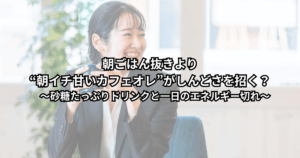 「目を覚ましたい」「お腹にやさしそう」という理由で選びやすい飲み物ですが、糖分とカフェインのセットは、朝のからだには少し刺激が強めです。